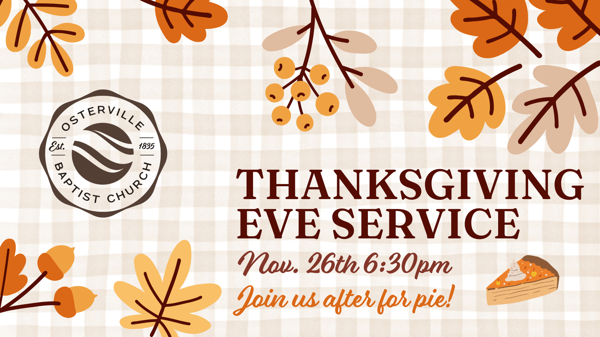 Prepare your hearts for Thanksgiving Day with a devotional and a time of worship. Following the service, we'll continue the fellowship with a delicious dessert.